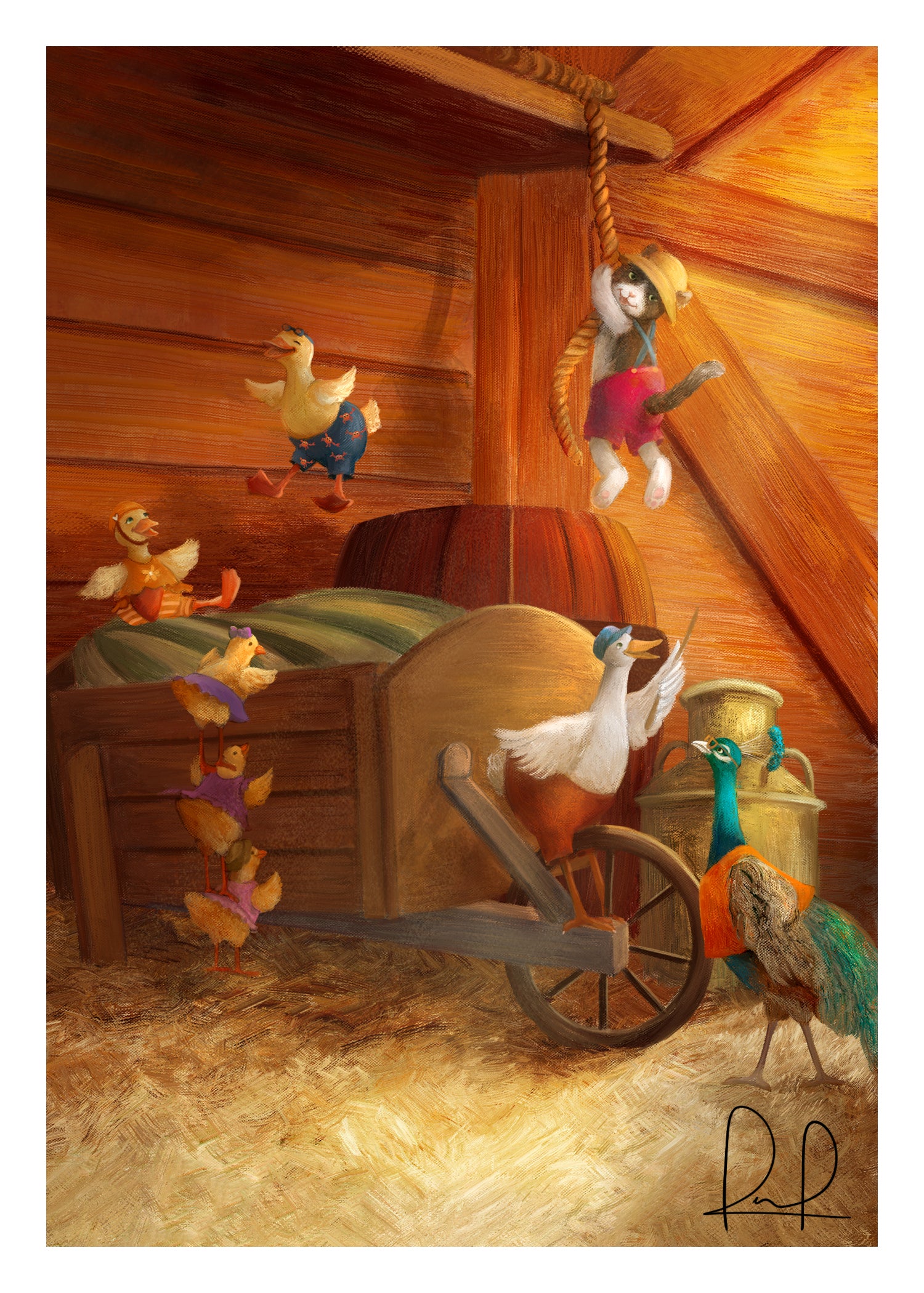 In the golden glow of the barn, a simple cartwheel turns into a celebration of joy and friendship.