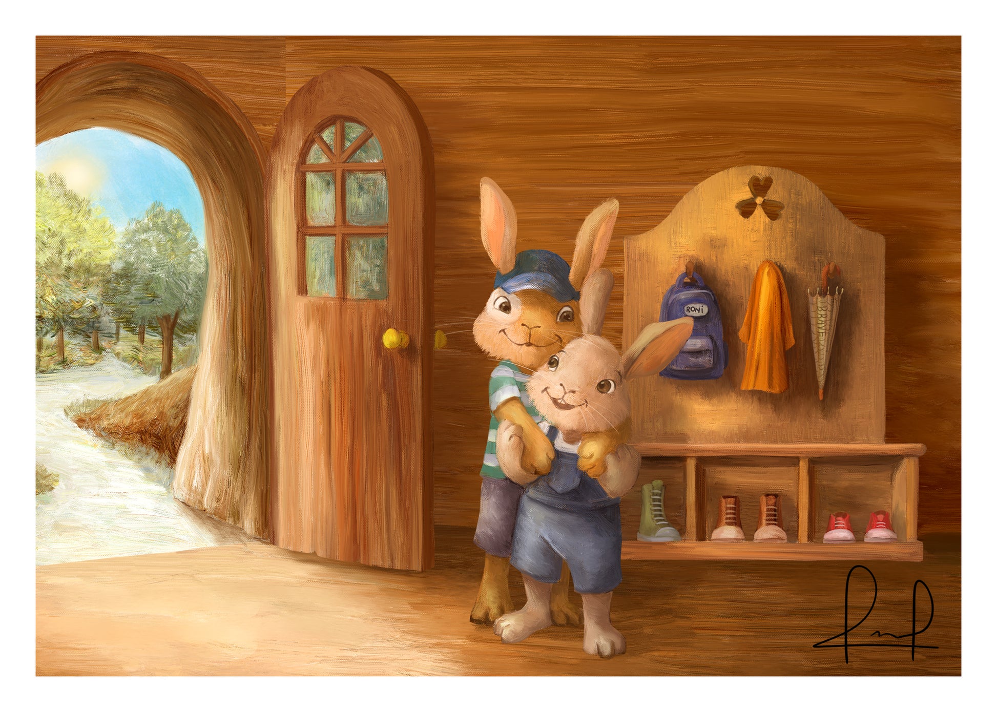 Bathed in morning light, Little Bug leans into his brother’s hug — no longer afraid, just proud to be brave.