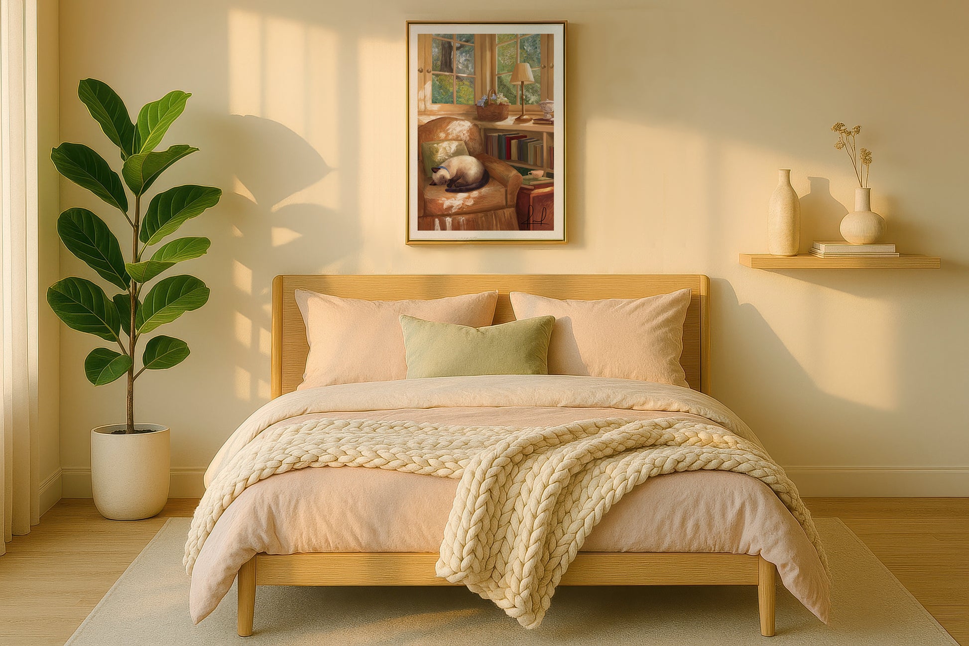 As sunlight spills across the room, the cat drifts off — peaceful and perfectly content.