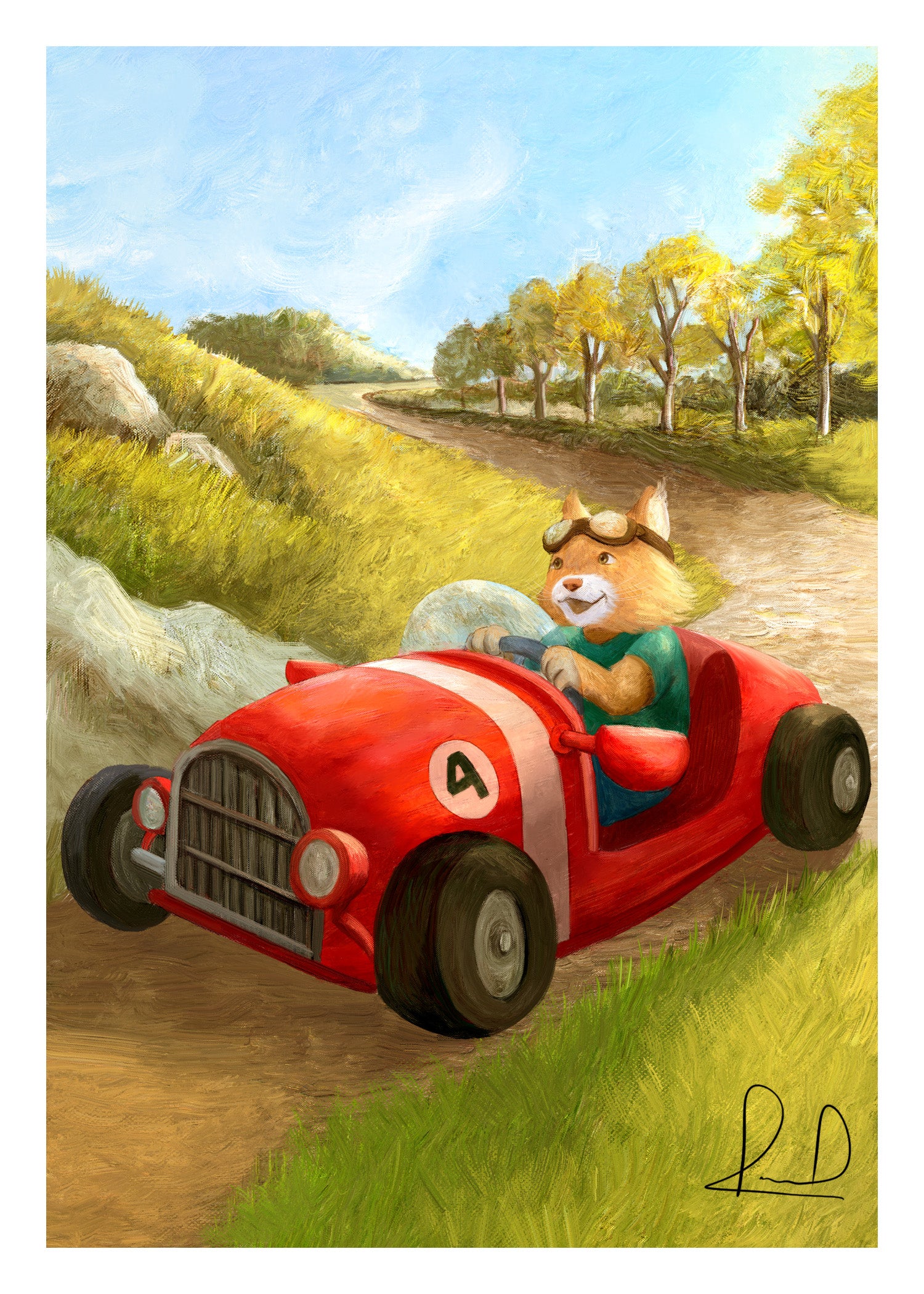 Leaves fly, wheels spin, and Reese blurs past in a flash of fur and speed.